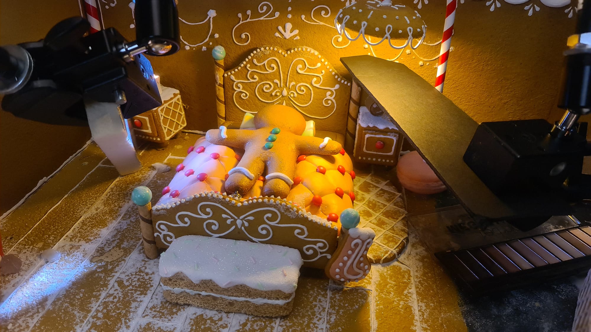 Hear how Mick got into this creative industry and what it’s like to make stuff and be part of the magic of film and animation. Mick shares some sets from a recent Dr Oetker gingerbread advert (at left).