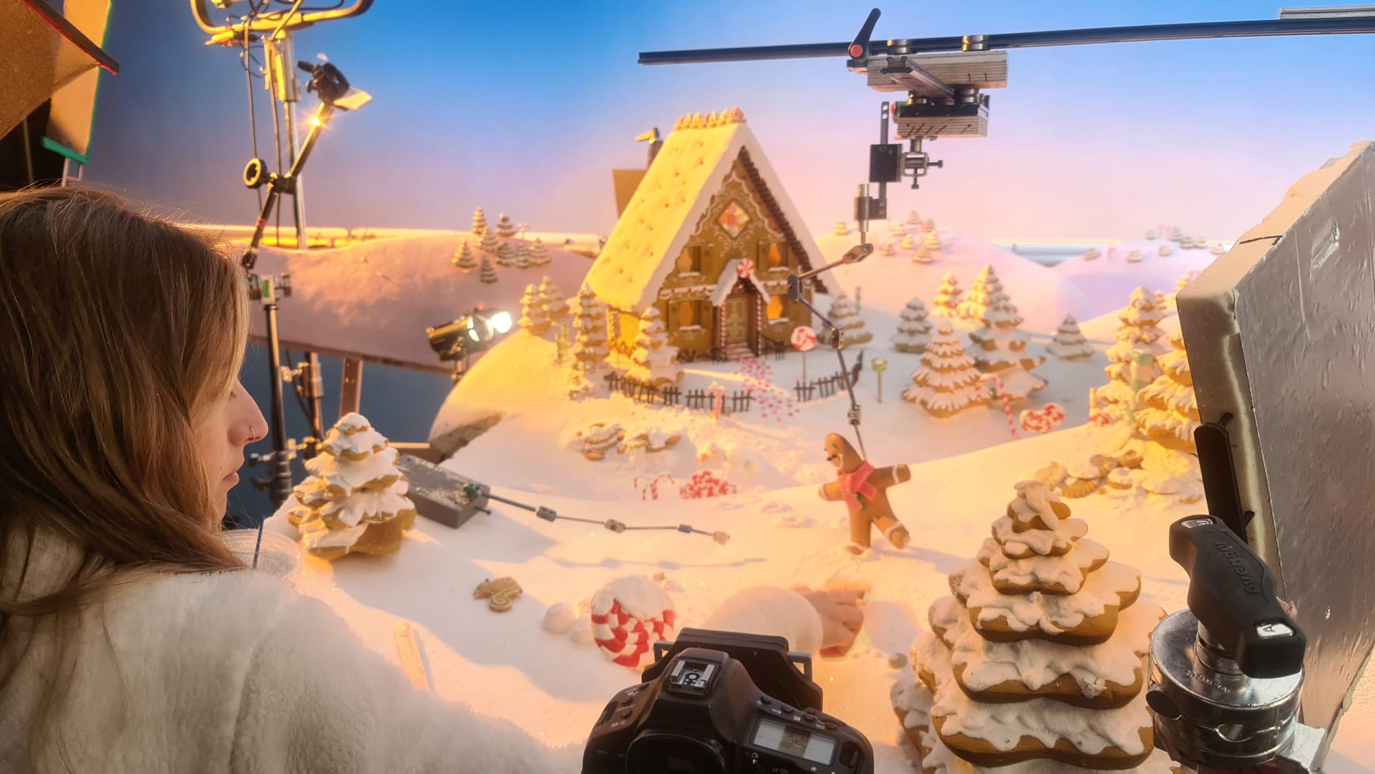 Hear how Mick got into this creative industry and what it’s like to make stuff and be part of the magic of film and animation. Mick shares some sets from a recent Dr Oetker gingerbread advert (at left).